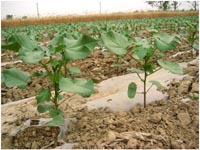 1、拌種、施底肥:覆蓋棉花生長(zhǎng)發(fā)育快,結(jié)鈴多,產(chǎn)量高,需肥量大。為使其植體發(fā)育健壯,必須有良好的土壤條件和營(yíng)養(yǎng)條件,定植前整地要細(xì),施足基肥,澆透水,排灌方便,選好優(yōu)良品種,搞好拌種處理,整地下種后,要用新高脂膜噴施土壤表面,并起壟蓋膜,可保肥保墑,能驅(qū)避地下病蟲(chóng),隔離病毒感染,不影響萌發(fā)吸脹功能,加強(qiáng)呼吸強(qiáng)度,提高種子出苗率。