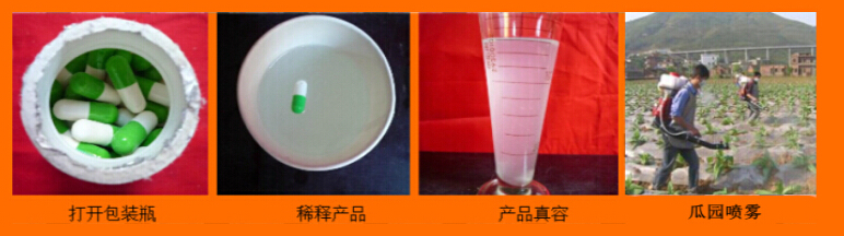 壯瓜蒂靈膠囊:每瓶80粒。可使各種瓜果防落,增香、增甜,膨大快。適用于西瓜、黃瓜、苦瓜、南瓜、絲瓜、冬瓜、西葫蘆、佛手瓜、甜瓜、哈密瓜、瓜蔞等。 每15公斤液體中加入本膠囊1粒,也可以加多粒,攪拌溶解后噴霧于植物表面。每畝瓜園每次用2粒,配60市斤水噴霧。間隔7—10天噴1次,連噴3次即可。用戶也可根據(jù)瓜體積膨大需要任意加大用量。本品PH值中性,遵照使用要求稀釋后噴霧,亦可以和各種農藥及葉肥混合使用。稀釋液存放保質期30天。